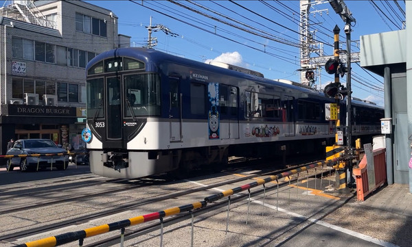 从清水寺到伏见稻荷 大社 要乘4站地铁,然后步行并穿过道闸。见道闸不禁勾起儿时的记忆,现在 上海 市区已经很少看见这样的道闸了,轨道交通全部实行立体路口。可能因为 日本 轨道建设得比较早,现在还保留道闸的原因吧,由于轨道列车来玩频繁所以道闸也不时升起落下算是一景。