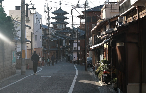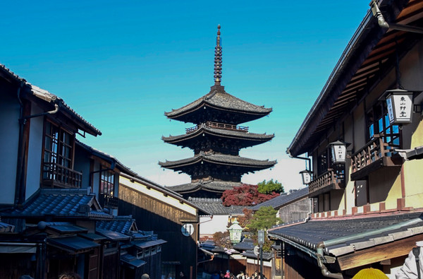 沿著小巷一路往前,远处就能看见八坂塔矗立在低矮平房之上。再往前走十字路口左面银杏大道前是 高台 寺,为纪念丰臣秀吉而建, 高台 寺夜景观枫名气也很响。接著就到了人头攒动的三年坂和二年坂这里有许多百年老店,网上那些捏了几十年的寿司的 日本 工匠故事可能就诞生于此,而这里各式各样的木屋建在山坡两边,晚上亮灯景色更加漂亮。此时不知不觉已经完全融入了接踵往返的人流中,经过三年坂有一处八坂塔打卡处,千万记得转身打卡。随著上坡的人群向上攀登,完全忘却疲劳,直到清水寺的山门。