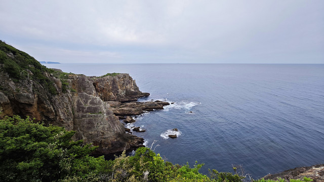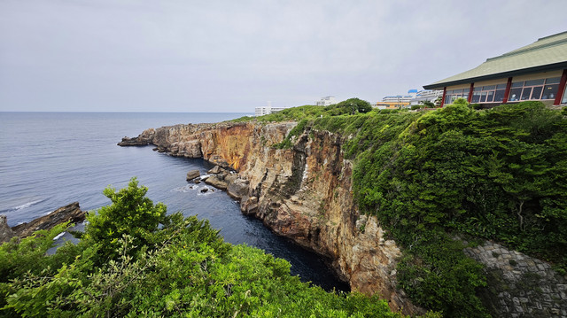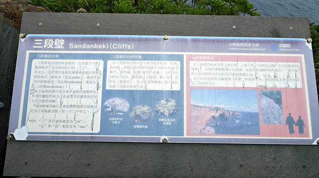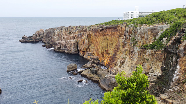 亿万年前海底火山运动,形成了这座壮观的断崖,太平洋熊野滩的惊涛骇浪,在此雕塑出意态万千的海蚀景观;尤其春天涨潮时候,上涨的潮水在东北风吹送下撞向崖壁,激起千堆雪,令人惊叹自然力量的伟大。
