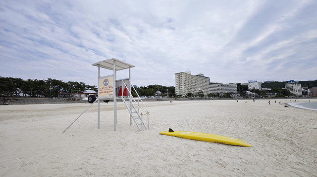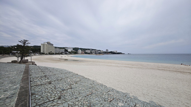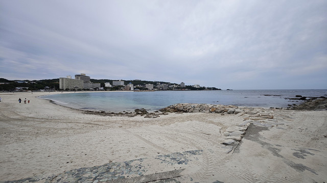 白良滨被誉为关西最美海滩之一,以长达620米的白色沙滩和清澈海水著称,沙子细腻洁白,沙质优良,是从澳大利亚运来的特殊沙石。