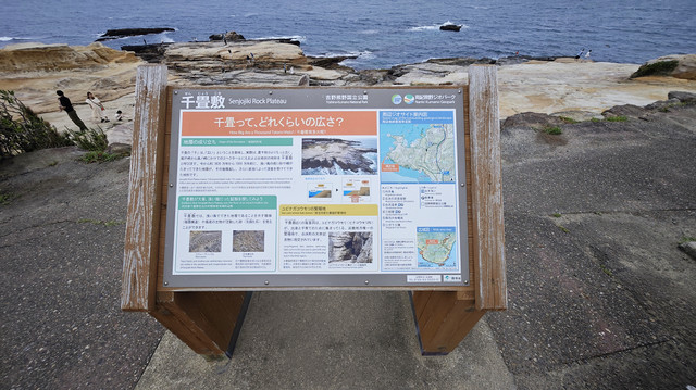 千层敷是一种地理景观,是因为看起来像是很多层畳(榻榻米)叠起来的而得名。从濑户崎的前端向太平洋突出的斜坡状岩石被汹涌的波浪侵蚀,形成了雄壮的景观。就像是大地与大海共同创造的艺术作品一样。