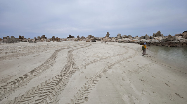 由于圆月岛那边的山路有塌方,正在维修,巴士无法进去,从白良滨走过去也不算很远,也就两个站左右。