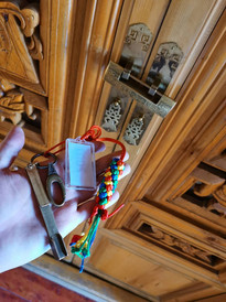 我俩去转动巨大的转经筒,差不多十米高的经筒,在阳光下,金色的筒体熠熠生辉,我俩使出浑身解数,让它转动起来。