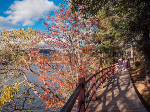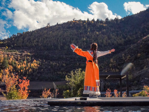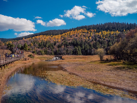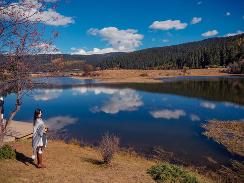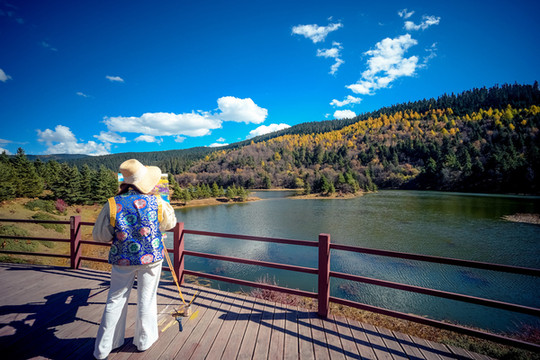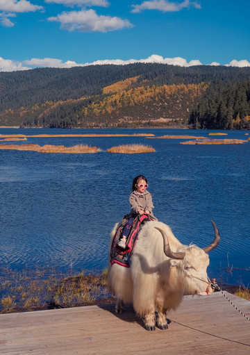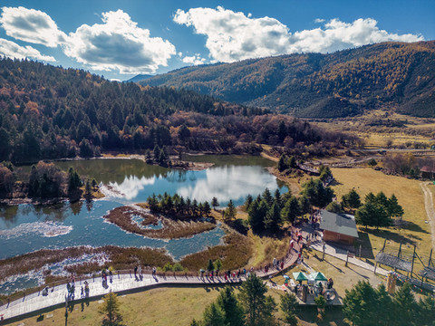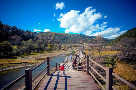 普达措的秋季,也是栈道最美的时刻。栈道两旁,枫叶如火,与蓝天白云相映成趣。走在栈道上,仿佛置身于一幅美丽的画卷中。