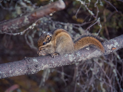 微风拂过,带走了夏日的燥热,带来了秋天的凉爽。沿途,我们还遇到了许多小动物,如松鼠。这些可爱的家伙在树林间灵活地穿梭,见到我们并不惊慌,反而好奇地观察着我们。它们在秋季的普达措中寻找食物,为即将到来的寒冬做准备。