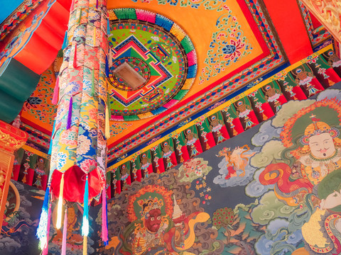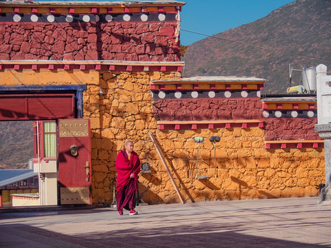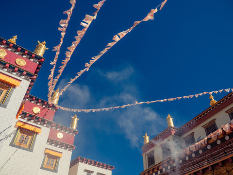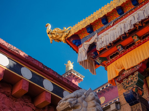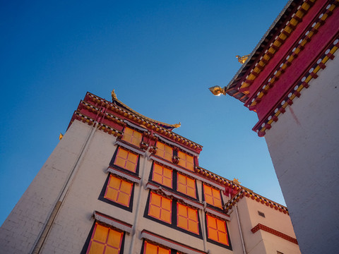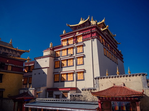 从外观上看,这座寺院的建筑风格独特,红白相间的墙体,金碧辉煌的屋顶,都给人以强烈的视觉冲击。而走进寺院,更是一片宁静与和谐。转经筒、白塔、神殿、僧侣……每一个元素都透露出一种深深的宗教情感。