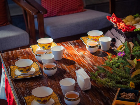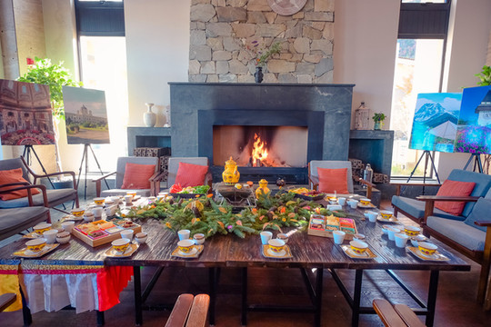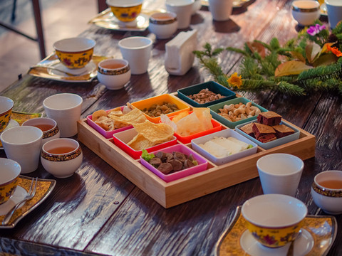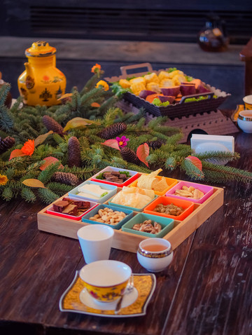 这次在高山别院特意体验了一下藏式风格的下午茶,它结合藏族传统美食与西式下午茶的融合与创新,既有藏族酥油茶、糌粑、藏族奶茶等传统风味,又有西式玫瑰奶茶、 三明 治、司康、坚果等经典下午茶美食,带来一场别具一格的美食体验。