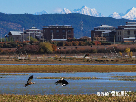 纳帕海在 香格里拉 ,有一个名叫 纳帕 海的地方,它不仅是一个风光秀丽的自然景观,更是许多珍稀鸟类过冬的理想家园。