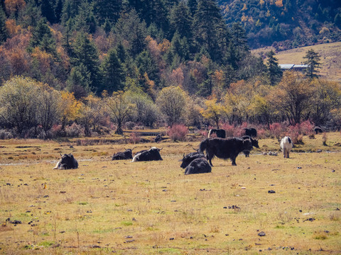 在这里,秋季赋予了这片土地更为绚丽多彩的色彩,也赋予了我们更多发现和体验的机会。初入公园,映入眼帘的是满目的金黄和翠绿。金黄的树叶与挺拔的松树形成鲜明对比,仿佛是大自然为大地披上的一层华丽的锦衣。数不清的牦牛和山羊在草地上安详的吃着草!