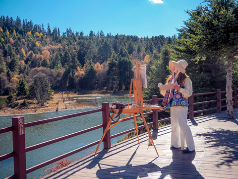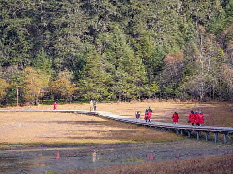 沿着蜿蜒的栈道前行,鸟儿们欢快地在林间穿梭,不时地发出清脆悦耳的鸣叫声。这些自由的生灵,给秋日的普达措增添了无限生机。