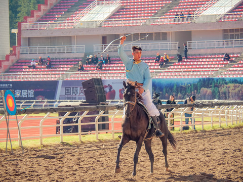 比赛开始前,来自当地马术俱乐部的优秀骑手们展示了精湛的马术技巧,他们与马匹配合默契,演绎了一系列精彩的马术动作。无论是高难度的跳跃动作,还是优美的马步展示,都赢得了观众们的阵阵掌声。骑术展示环节中有不少女骑手参与,她们展现了女性的力量和勇气,也进一步推动了当地马术运动的发展。