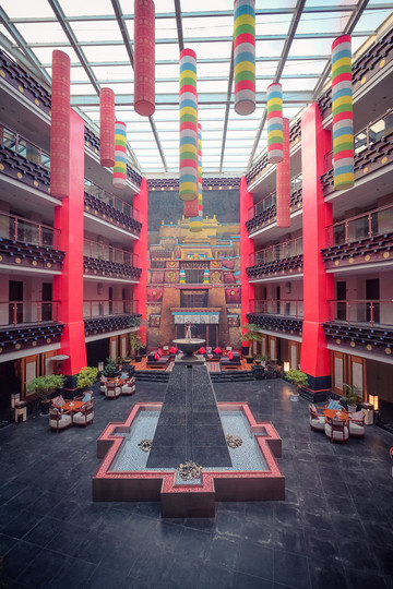 酒店中庭非常大气,喝茶休息拍摄打卡都很不错,曲线的玛尼堆也有设计师设计出了纪念碑的气概!