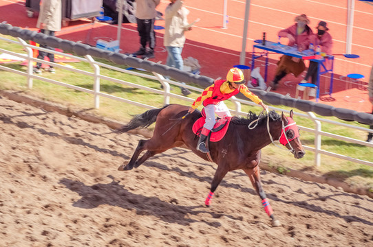 观众们目不转睛地看着赛马们在赛道上飞驰,紧张而兴奋。每一场比赛都充满了悬念和惊喜,无论是领先者的冲刺,还是追赶者的反超,都让观众们热血沸腾。赛马场上欢呼声、掌声不断,为参赛的马匹和选手们加油助威。