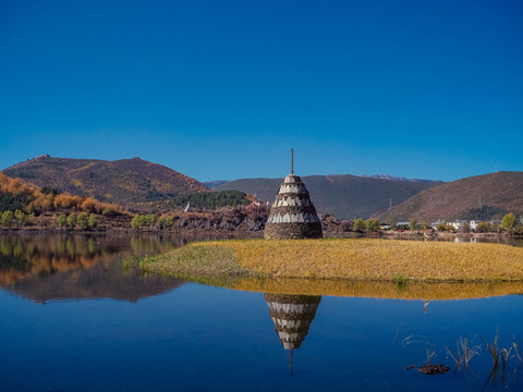 接着在浮桥栈道和石板路的指引下,你可以沿拉姆央措湖岸漫步,欣赏湖边美景。湖面如镜,倒映着天空的云彩,湖中的玛尼堆静静地矗立着,仿佛是神灵的化身。站在这里,你会被眼前的美景所震撼:天葬台、寺院倒影、湖心玛尼堆、神湖草甸、庄园牧歌等风景尽收眼底。与此同时,拉姆央措湖也是一处不可多得的景点。如果遇见风平浪静,就可以看到松赞林寺的完美倒影。