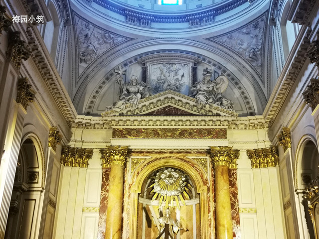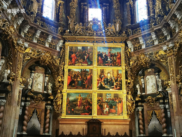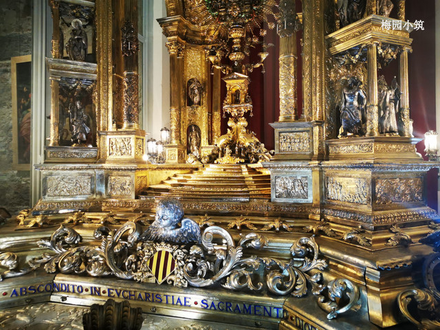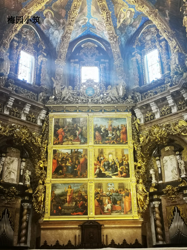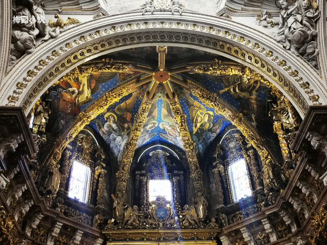 而主祭坛壁画则描绘了耶稣基督的生平事迹,包括诞生、受难和复活,是典型的文艺复兴风格,注重透视和人物表情,由16世纪的著名艺术家创作;圣杯礼拜堂壁画描绘了圣杯的历史和传说,呈现出巴洛克风格,富有动感和戏剧性,由17世纪的艺术家创作。壁画色彩丰富,使用了大量金色和蓝色,象征神圣和天国;注重对称和透视,营造出深邃的空间感;人物形象生动,表情丰富,具有强烈的表现力。这些壁画通过视觉艺术传播基督教教义,可以帮助信徒理解圣经故事,更加营造出一种神圣的氛围,增强信徒的灵性体验。