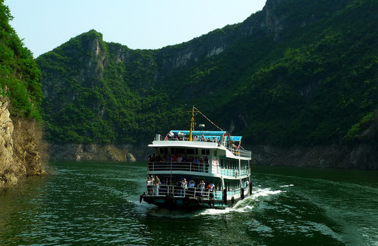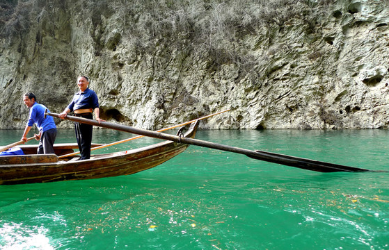 船靠神农溪风景区,这里是纤夫文化的发源地,想必歌曲《纤夫的爱》就诞生于此吧。神农溪发源于神农架,经湖北向南入深山峡谷之中,至巫峡口入长江。她是典型的峡谷溪流,两岸山峰绝壁峭耸,溪水在刀削般的峡谷间冲撞,水道曲折蜿蜒,狭急清浅,漂流安全又刺激。
