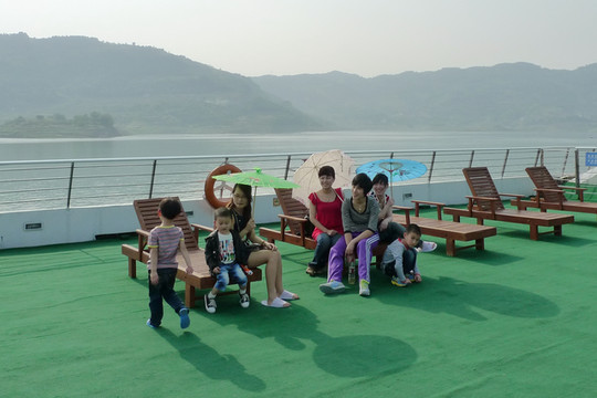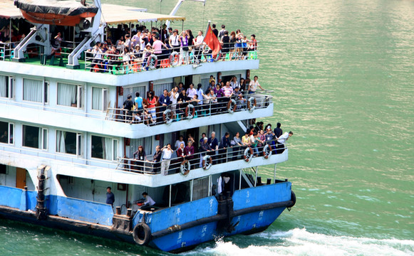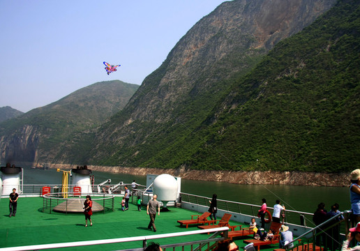 邮轮观光就是好,可以上岸游玩,累了可以回船休息,在邮轮上迎风赏景也很舒服,能感受到“两岸猿声啼不住,轻舟已过万重山”的意境。沿途游客虽然来自五湖四海,远距离打招呼还是非常热情的,不管真假先嗨一个。