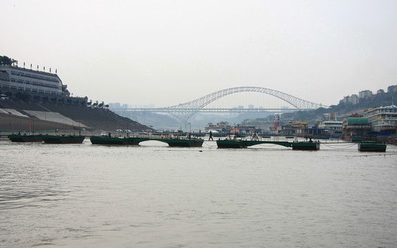 一路来到朝天门,首先要参观的就是码头的广场,在广场上,可以看见对面弹子石的风光,重庆公路“零公里”点标志就在朝天门广场。朝天门码头有旅游船,游客可以登上旅游船,游览一下朝天门码头的风景,我们要乘的邮轮就停在这个码头。
