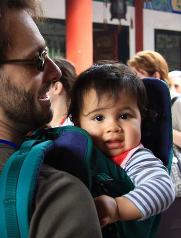 遇上一个可爱的小老外,黑黑的大眼睛好像是中国人。