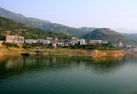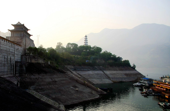 在白帝城上远观,库区安置点的楼房依山而建,青山绿水人家真乃人间仙境。但当年他们搬迁的时候一定经历了难以想象的痛楚,远离故土,重建家园,他们舍小家为大家的牺牲精神值得我们敬佩。
