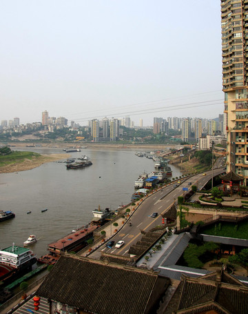 唐代大诗人李白在《蜀道难》一诗中曰:“蜀道之难,难于上青天”,所以从水路到重庆最为便捷。嘉陵江于此注入长江,朝天门是两江枢纽,也是重庆最大的水路客运码头。在这里你可以看到嘉陵江清水与长江浑水,形成“夹马水”景观,自此称为长江上的“黄金水段”。