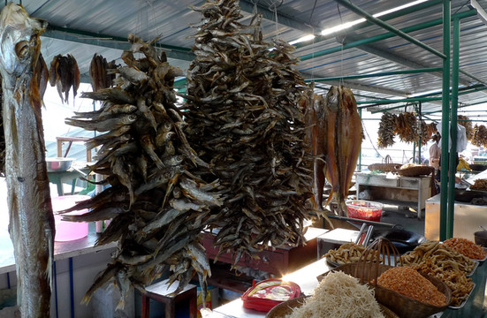 靠山吃山靠水吃水,住在江边的人们各种鱼干品种齐全,特别是各色山货非常多,喜欢的可以带点回家。