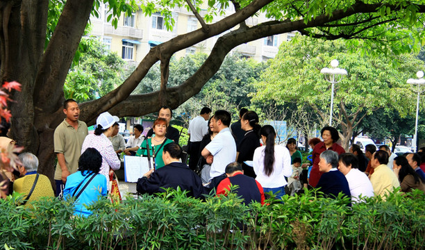 广场一角不分时间段,都有各色人群休闲品茗、一副安然自在的样子,怎么都不上班?