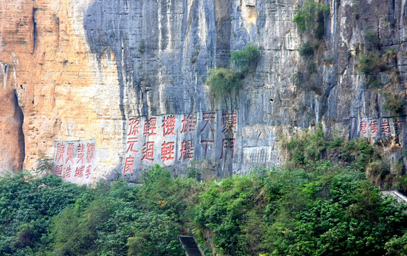 "众水会涪万,瞿塘争一门",杜甫用一"争"字,画出夔门江水的澎湃气势。如今,临江的石壁上,抗日名将孙元良的"夔门天下雄,舰机轻轻过’、李端浩的篆刻"巍哉夔门"和行书"夔门瞿塘"均深刻石壁之上。