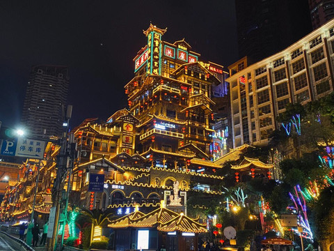 洪崖洞:这是重庆的一个历史街区,以其独特的岩洞建筑和夜景而闻名。您可以在这里领略到传统的重庆风情,品尝当地小吃,还可以欣赏到美丽的江景。