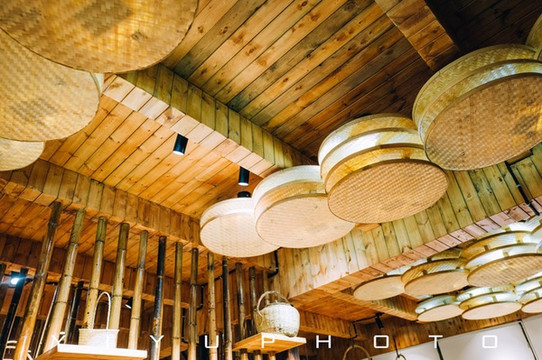 竹器行光影迷人,这里以竹为元素做空间设计,美观雅致,这里也有手工艺者在展示竹编手艺,传承民俗文化。