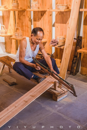 黎里古镇里的手作也很多,这家木器店里有81岁手艺人朱龙官,做了六十多年的箍桶行业了,由于制作精良,质量优异在这家原作木器里能看到朱师傅箍桶的整个过程,欣赏下江南传统木艺,那些寄托着古人美好祝愿的日常家用品,现在成为了摆设,传承了传统手工艺。
