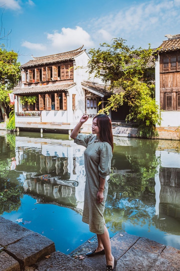 蓝天白墙黛瓦,小桥流水人家,慢步在黎里古镇,闻着清幽的桂花香,享受午后的灿烂阳光。河边两侧台阶上时不时有当地居民在浣衣洗菜,邻里互相寒暄,孩童们在无忧无虑的奔跑,对于一个北方姑娘来说,这样的画面陌生又动人。让生活慢下来,沉浸在这水乡人家里,四周生机勃勃的绿树环绕,古朴典雅的石板街巷,每处细节都有全新发现。