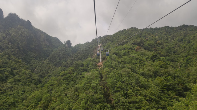 看图片,你以为到顶就到了?大错特错!此次索道旅程,有上居然还有下,一波三折,连跨两个山谷,满眼环伺,一个字“绿”。