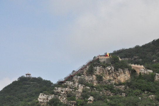 从下寺步行到上寺,走了一个大大的弧线弯道,下山时我们以为可以直接从华严寺下到公路,可是怎么也找不到路,询问当地人,说走回头路,回走至十八盘下山,到达公路下山的三分之一处,电瓶车半途不停,我们只好徒步下山,好在一路木栈道,而且是下坡,途中还看了天然大佛,象鼻山等自然景观,弥补了遗漏的景点。
