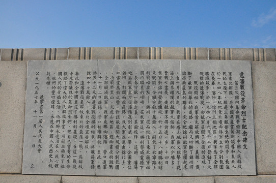 中午11点50分出了景区,乘10路公交返回酒店,取了行李,在门外乘14路公交赶到汽车站,买了1点到锦州的汽车,下午2点40分到锦州汽车站,入住如家火车站店,放下行李,赶忙前往锦州辽沈战役纪念馆,距火车站很近。3点半到达,本以为下午4点以后才会闭馆,通常博物馆、纪念馆都是这样,没想到它的开馆时间是下午1点至下午3点,又让我们吃了个闭门羹,前年是因为维修而闭馆,没有参观成。没有办法,只好悻悻而去。