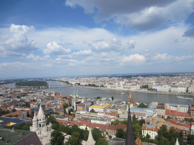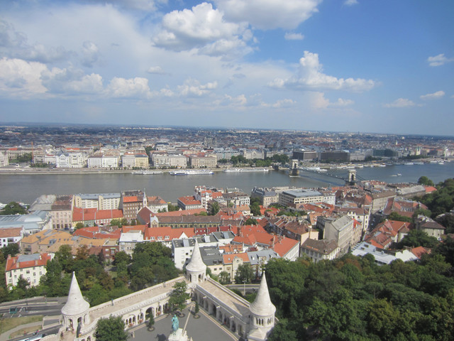 出门走五分钟就到了景点,本来今天打算去马加什教堂,但是有人结婚,所以没有开放,先买票去渔人堡,站在上面可以眺望多瑙河岸对面的国会大厦,售票处在旁边一个并没有标注的地方,城堡的房间什么的都没有了,有新人在上面拍婚纱照。