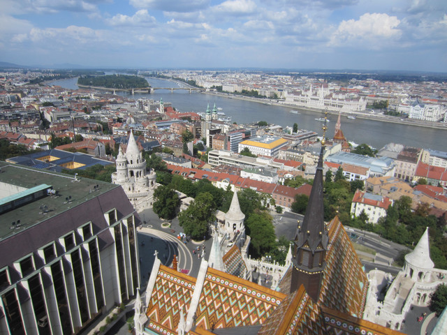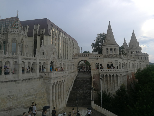 吃完先去马加什教堂买三点上塔楼的tour了,游客都在门口等, 三点准时有工作人员来开门带我们上去,台阶好窄,螺旋上升的,和昨天圣玛利亚教堂一样的,中间停了几次看外面的风景,四点不到就下楼了。