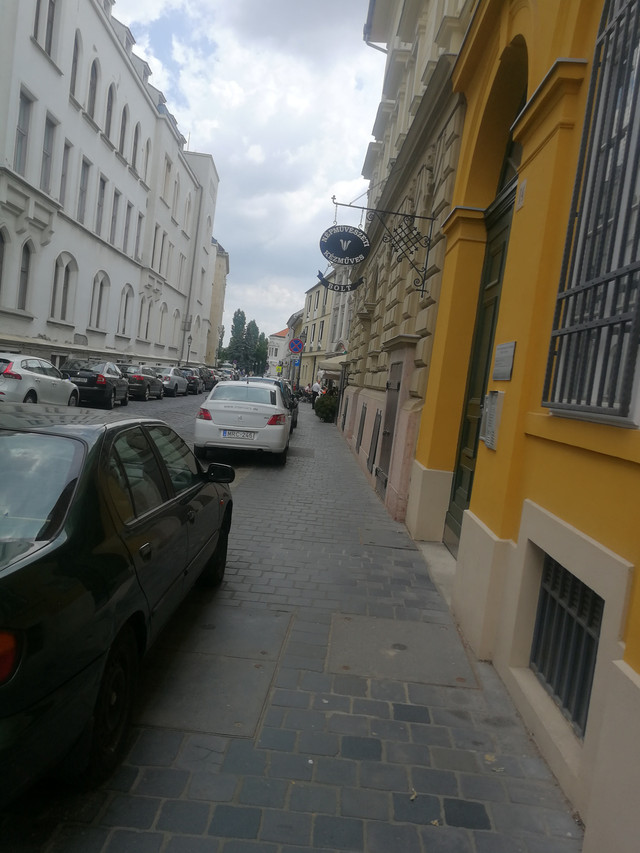 上了的士经过了塞切尼链桥和布达佩斯城堡山,穿过小街道就到了酒店,是个不大的酒店,只有两层,我以为很大,司机帮我们把行李拿下来,酒店一层是餐厅,穿过餐厅就到了前台,一个小房间,一个中年男子在那里,让填了一下个人信息,包括地址和护照什么的,也和国内一样的,签了字,然后就带着我们上楼了,都没有电梯,因为只有两层高,房间的床很高,我们的房间叫做爱巢,哈哈哈哈。