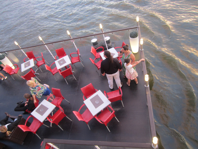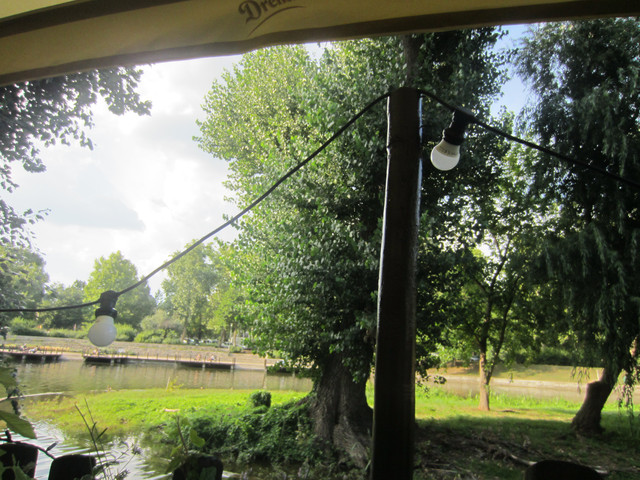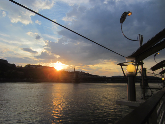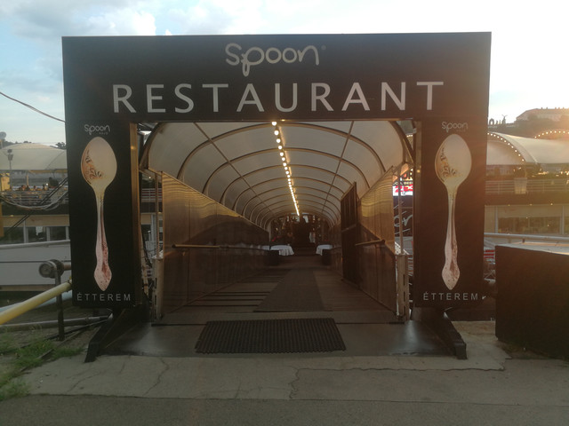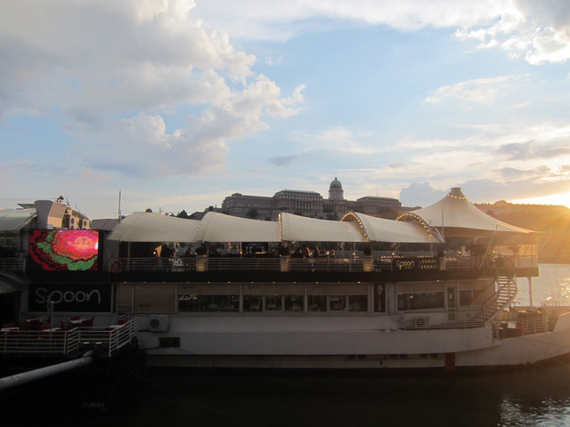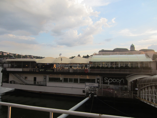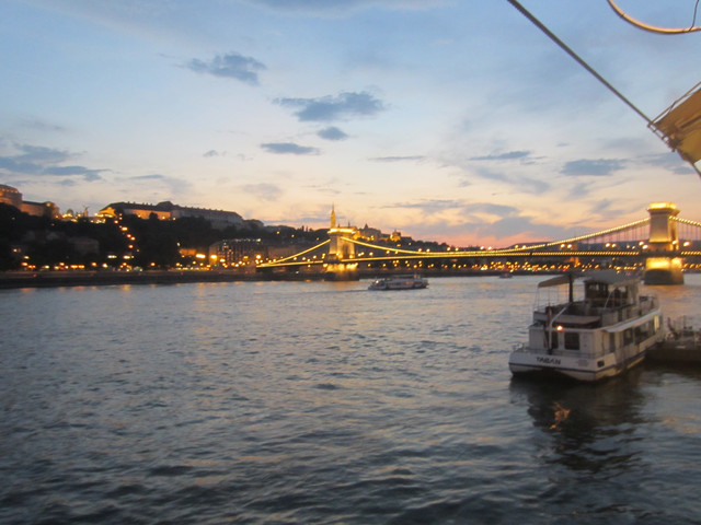 六点的时候从博物馆走下去,走过链桥,去在网上找的一个餐厅,但是我们去的第一家店很小,满了,就去了另外一家在多瑙河畔的餐厅,在室外吃的,路上还看到写了中文的房产公司的广告,说他们有中文服务,请联系谁谁谁,国人真是买遍全世界。