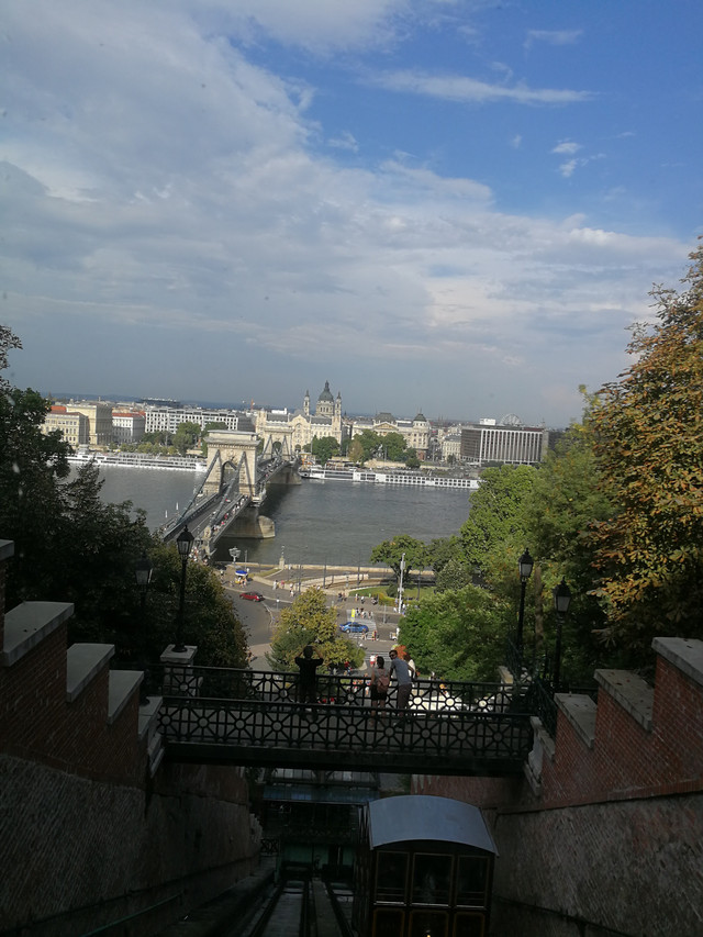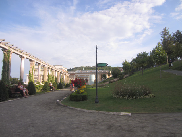 然后去历史博物馆,博物馆有五层,出来以后坐那种小的像索道车一样的车子下去塞切尼链桥,看到街道上有那种老式电车,像旧上海一样的,还有那种轨道火车,好慢,我们先去了一个花园,发现其实历史博物馆是可以走下去的。