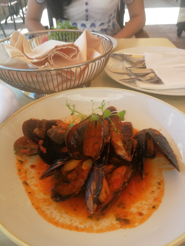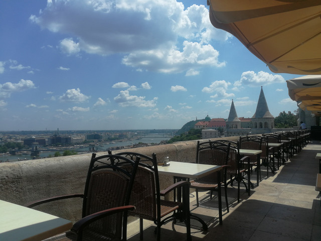 中午去渔人堡的餐厅吃饭,在室外吃的,开始有点热,后来刮风了才凉爽一点。