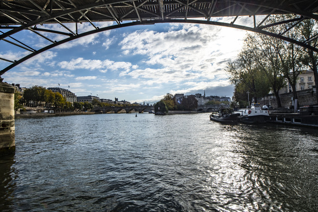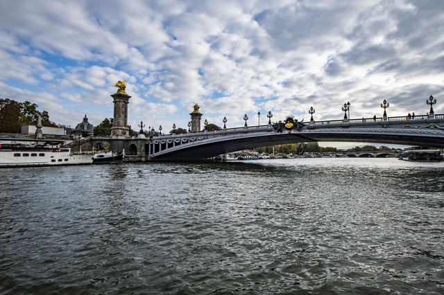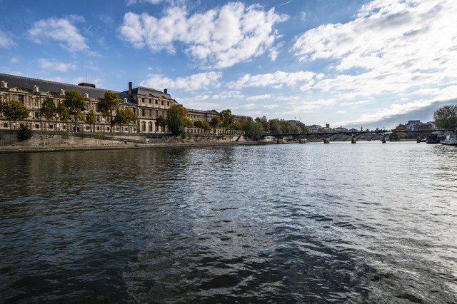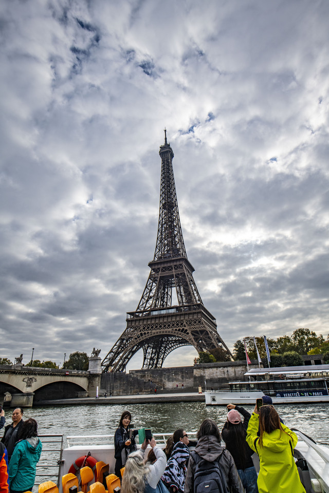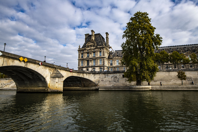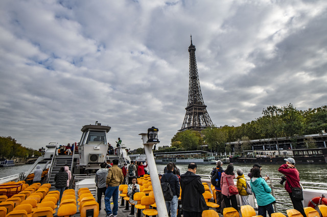 塞纳河像一条蓝色的丝带,蜿蜒穿过城市,我们乘坐游船欣赏着两岸错落有致的建筑和迷人的风景,闻名世界的埃菲尔铁塔、巴黎市政厅、卢浮宫、巴黎圣母院。。。陆续在眼前略过,美不胜收。仰望着埃菲尔铁塔——这座钢铁巨人,瞬间被它的宏伟与壮观所震撼。下船后,我们走进了卢浮宫。