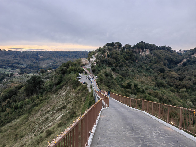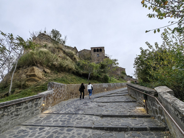 乘车前往天空之城。游览天空之城,宫崎骏的《天空之城》就是以意大利这一座真正的天空之城为原型。大教堂建于13世纪,文艺复兴风格,门前几根断柱表明旧版教堂更豪华,现在参观的是16世纪改建的。拱墙、栅栏、地下信道,每每都激起人们仿佛置身中古世纪场景的幻想,山顶俯瞰,视野非常漂亮。