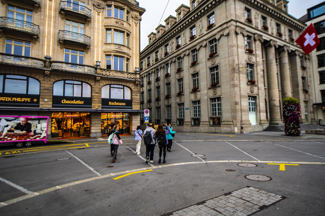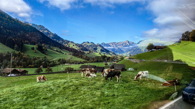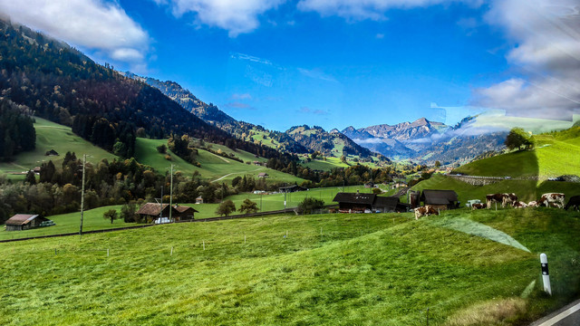 下山后,我们来到瑞士的因特拉肯,这是一座被阿尔卑斯山环绕的小镇,宛如一个童话世界。湖水清澈见底,倒映着周围的山峦和白云,美得让人窒息。车窗外的瑞士乡村,可以看到成群的牛羊在草地上悠闲地吃草,木质的房屋错落有致地分布在山间,炊烟袅袅升起,构成了一幅美丽的田园风光画。这里的空气清新宜人,让人仿佛忘却了一切烦恼。