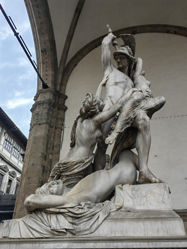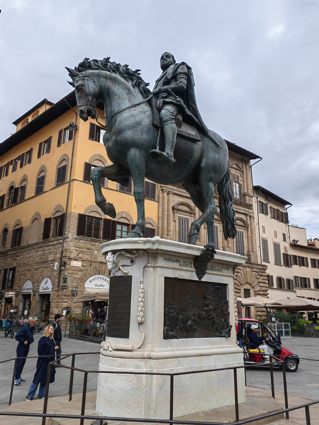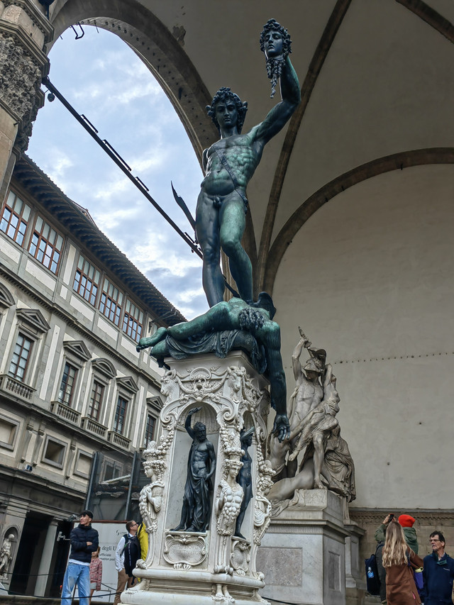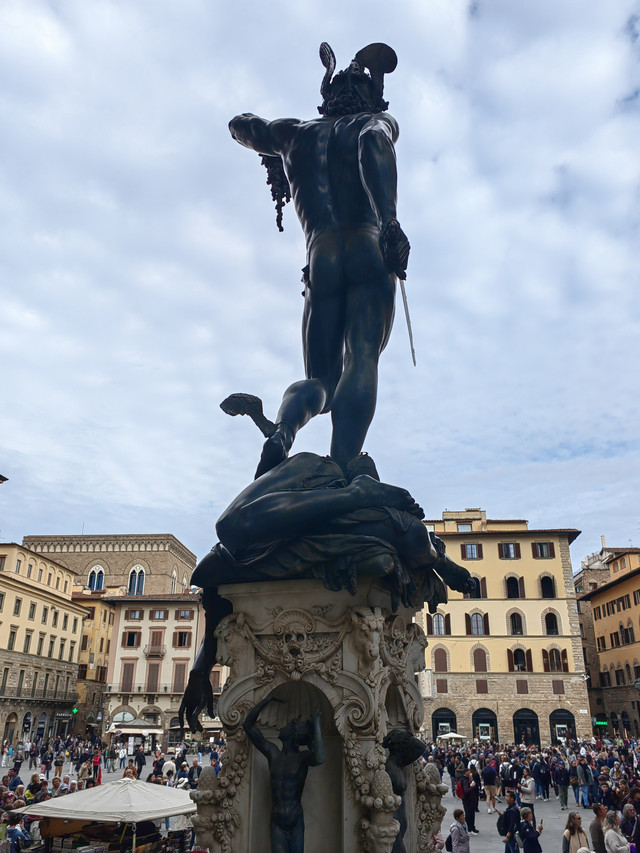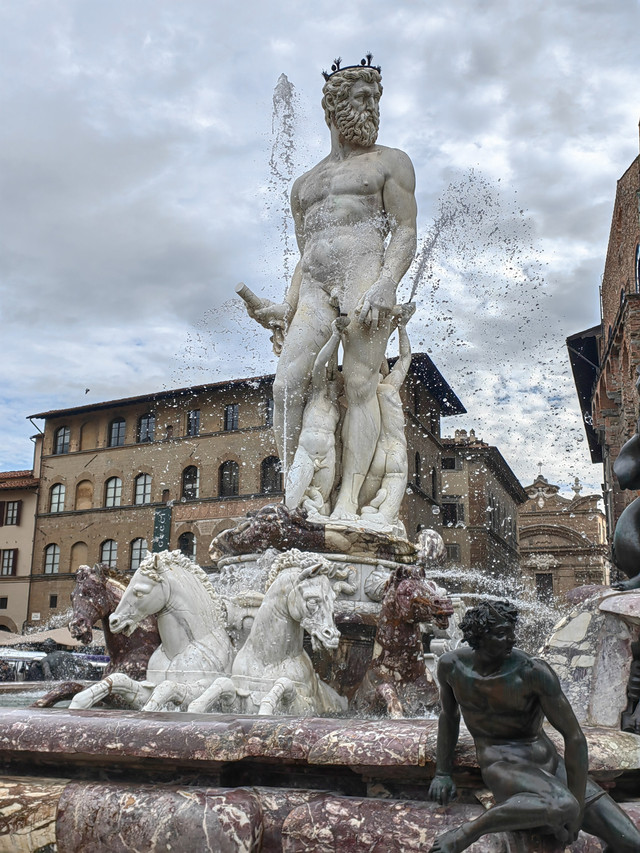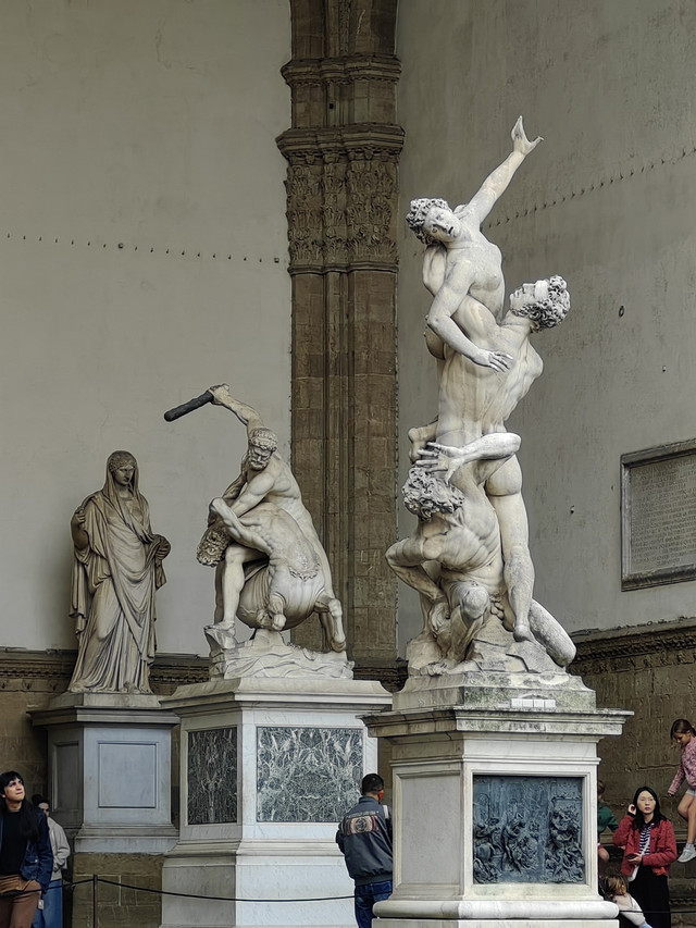 市政厅广场,这里有一座建于十三世纪的碉堡式旧宫(现为市政厅),连同整个广场成为了一座露天雕塑博物馆,各种石雕和铜像作品栩栩如生,如人们所熟悉的米开朗琪罗的《大卫像》复制品。