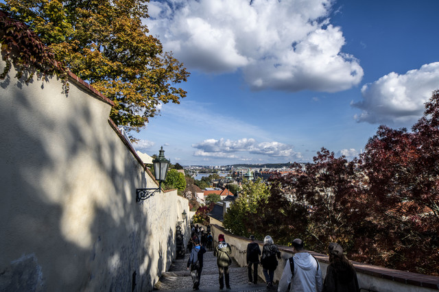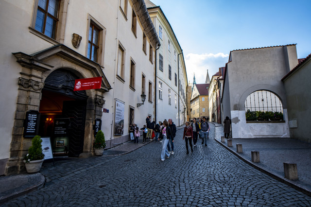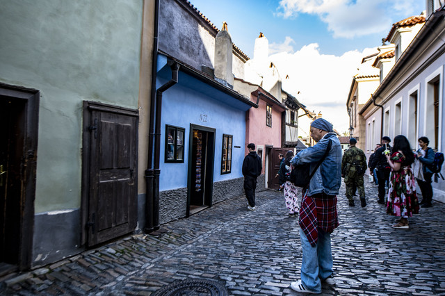 黄金巷(Zlata Ulicka)是布拉格古堡最著名的景点之一,位于布拉格城堡内圣乔治大教堂和玩具博物馆之间,是一条出售手工艺品的商业街,热闹程度与查理大桥不相上下。16世纪罗马帝国时期,这里居住了很多冶金师,后来这条石砖路便被称为黄金巷。小巷不大,任何建筑都是小小的,色彩丰富,像童话王国里精灵的居所。黄金巷22号一间水蓝色的房子就是一百多年前卡夫卡的居所,现今已经成为一家小书店。