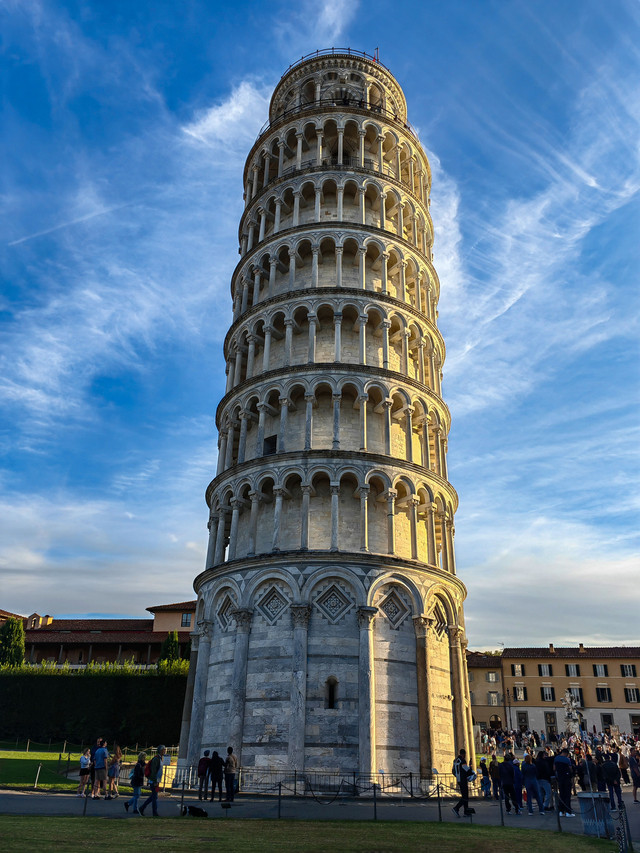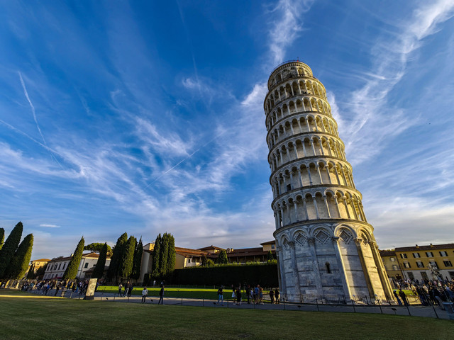 比萨斜塔,它位于意大利中部比萨古城内的教堂广场上,是一组古罗马建筑群中的钟楼,在建造初期,斜塔平均每年倾斜1毫米,也曾一度停工,修缮工作一直持续至今。这座堪称世界建筑史奇迹的斜塔,不仅以它“斜而不倒”闻名天下,也是世界建筑史上的一大奇迹。