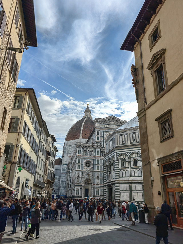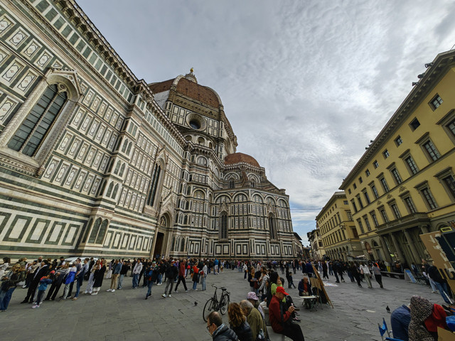 游览佛罗伦萨游览红色圆顶的圣母百花大教堂,是世界上第三大教堂,由十块浮雕组成,内容以叙述旧游,游览圣经题材为主的天堂之门。