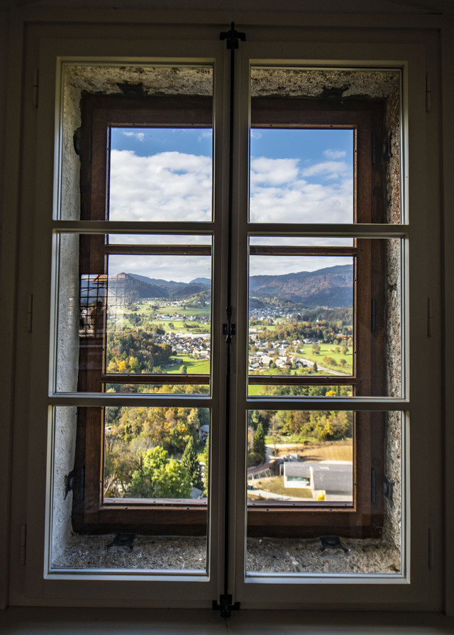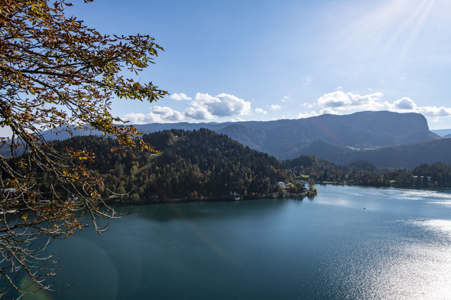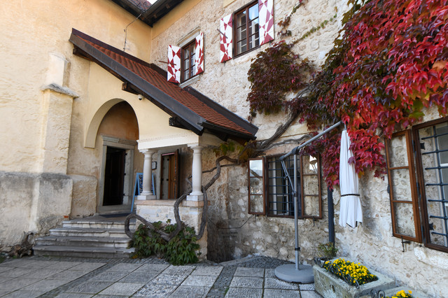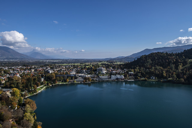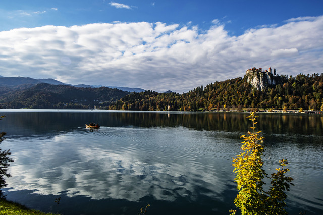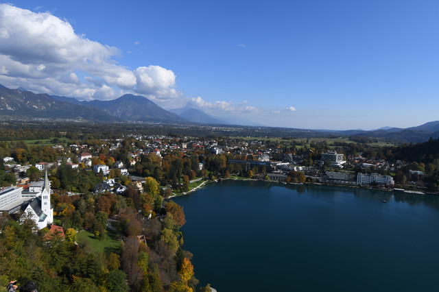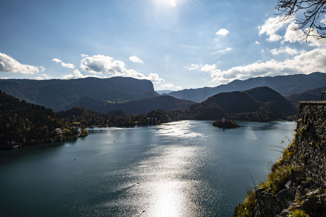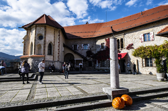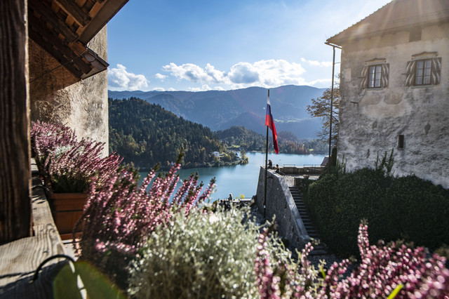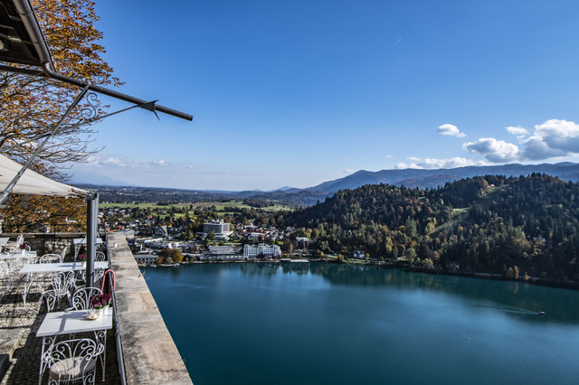 布莱德城堡位于湖畔山顶,雄踞于一块高达100米的峭壁上,视野开阔,可以俯瞰整个湖景。城堡映衬在湖中的倒影和布莱德岛相映成趣。