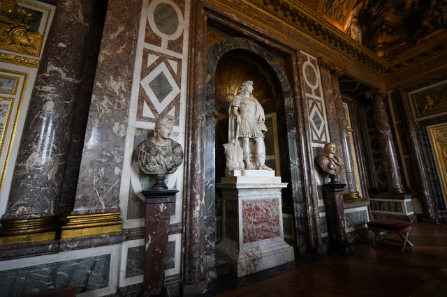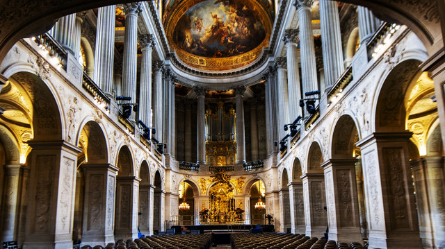 凡尔赛宫的历史始于1624年路易十三建造的狩猎小屋,路易十四时期将其扩建为政治中心,1682年起成为法国宫廷与政府驻地。历经路易十五、路易十六时期的改造,宫殿逐步形成“古典主义立面和巴洛克内饰”的独特风格。中央宫殿区以镜厅和皇家礼拜堂为代表;宫殿仍保存法国最完整的17-18世纪皇室生活场景。